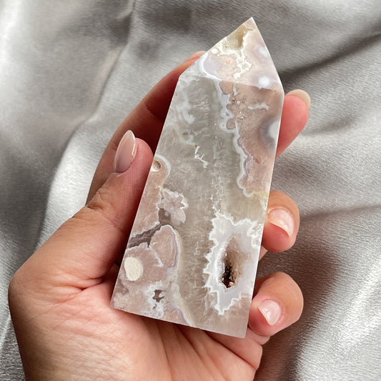 HQ 櫻花瑪瑙共生石英柱